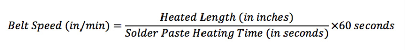 對于您正在考慮的每個(gè)烤箱,將加熱長度(以英寸為單位)除以建議的總加熱時(shí)間(以秒為單位)。 然后乘以60秒以獲得皮帶速度(英寸/分鐘),您需要實(shí)現(xiàn)該輪廓: