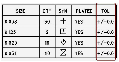如果您的孔公差為零(請參見下文),那么Advanced Circuits將假定您沒有使用我們的默認孔公差。 上面列出了我們的默認孔公差。