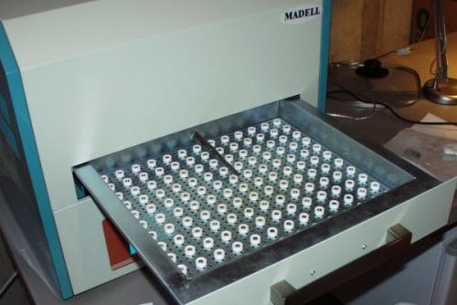 正如你所看到的,托盤非常大。 烤箱內置風扇用于冷卻。 元件是紅外線,加熱速度非常快,可以非常接近地監測溫度。 纖細的棕色是溫度傳感器,應該貼在每個回流的PCB上 - 這是我們從未做過的事情。